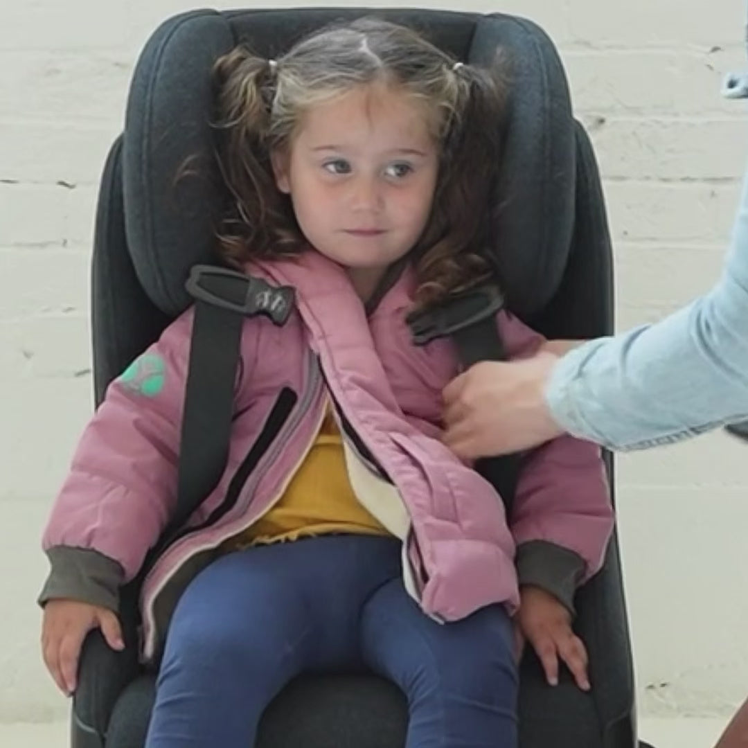 "The American Academy of Pediatrics and the NHTSA both recommend taking traditional coats off in the car seat. The coat is going to add padding underneath the harness which creates space, and that space is dangerous for a child. In a crash it can lead to critical brain, neck and spine injuries. But most busy parents find it really hard to take the coat off every trip, so I designed a coat that can stay on safely and be used with the harness correctly all in one easy step."