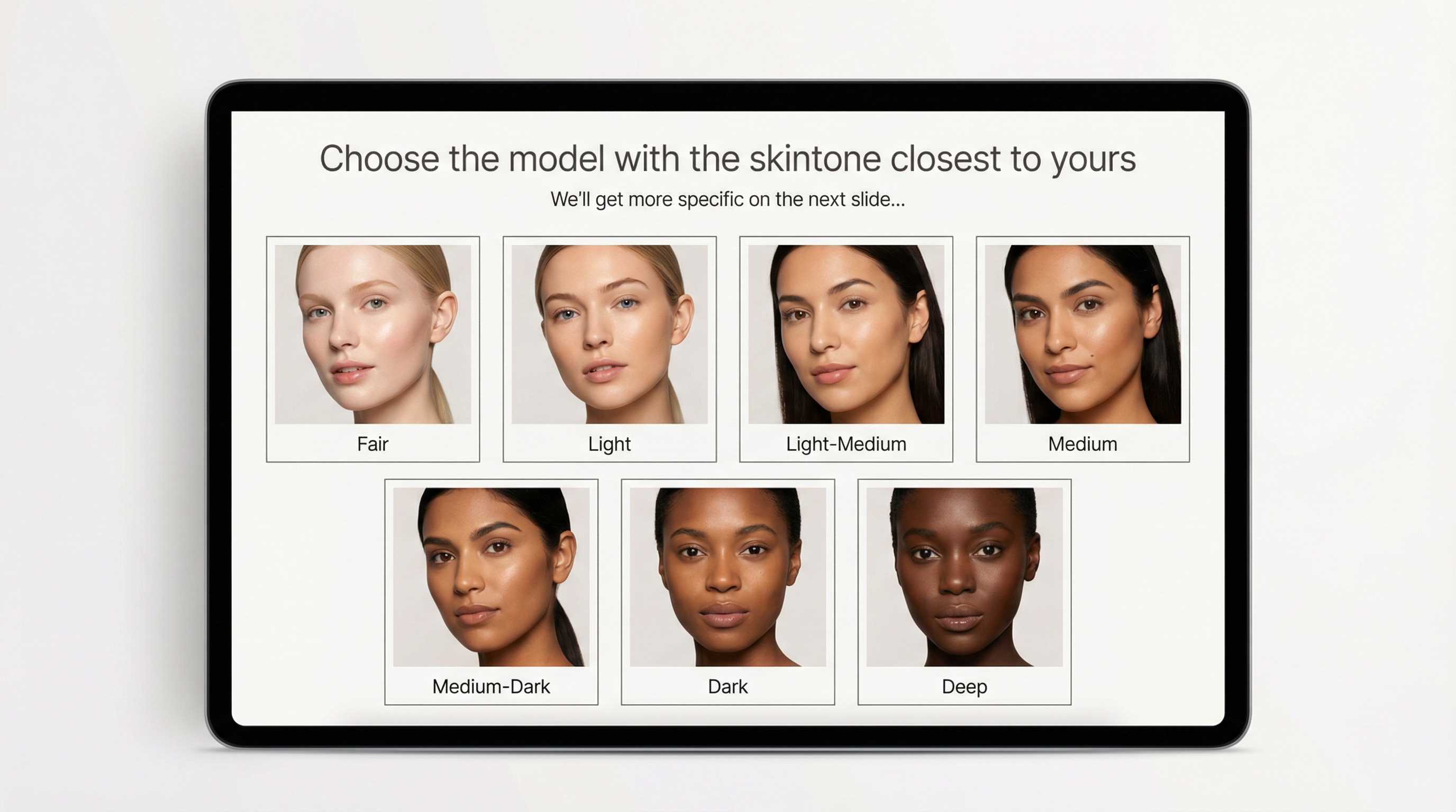 One of the most powerful features is the visual shade-matching question. Customers select from photos of real models with different skin tones, making it easy and intuitive to find their perfect match without any guesswork.